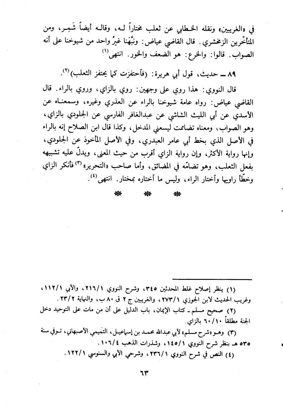 // الغريبين وَنَقله الْخطابِيّ عَن ثَعْلَب مُخْتَارًا لَهُ وَقَالَهُ ايضا شمر وَمن الْمُتَأَخِّرين الزَّمَخْشَرِيّ قَالَ القَاضِي عِيَاض وَنَبَّهنَا غير وَاحِد من