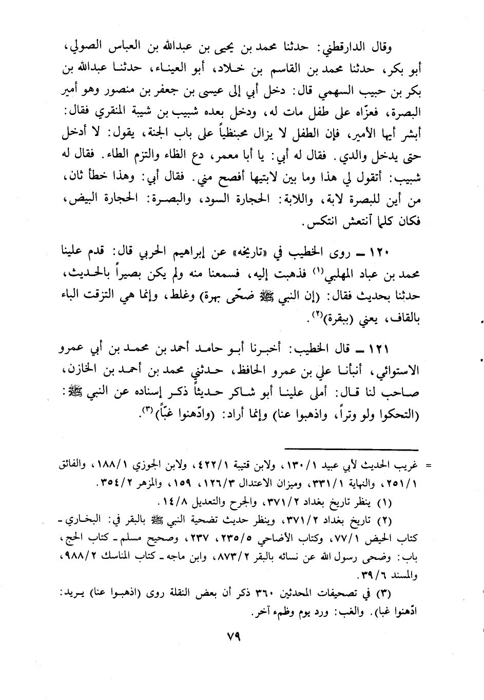 120 - روى الْخَطِيب فِي تَارِيخه عَن ابراهيم الْحَرْبِيّ قَالَ قدم علينامحمد بن عباد المهلبي فَذهب اليه فسمعنا مِنْهُ وَلم يكن بَصيرًا الحَدِيث حَدثنَا بِحَدِيث فَقَالَ
