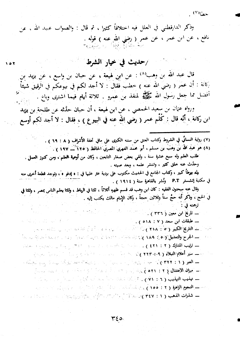 خطأ وذكر الدارقطنى فى العلل فيه اختلافا كثيرا ثم قال والصواب عبيد الله عن نافع عن ابن عمر عن عمر رضى الله عنه قوله حديث فى خيار الشرط قال عبد الله بن وهب عن ابن لهيعة عن حبان بن واسع عن يزيد بن ركانة ان عمر رضى الله عنه خطب فقال لا أجد لكم فى بيوعكم فى الرقيق شيئا ورواه عثمان بن سعيد الحمصى عن ابن لهيعة ان حبان حدثه عن طلحة بن يزيد ابن ركانة انه قال كلم عمر رضى الله عنه فى البيوع فقال لا أجد لكم اوسع