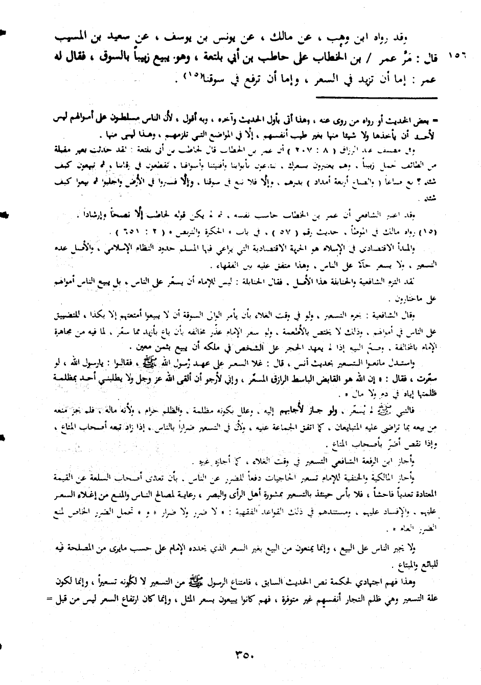وقد رواه ابن وهب عن مالك عن يونس بن يوسف عن سعيد بن المسيب قال مر عمر بن الخطاب على حاطب بن ابى بلتعة وهو يبيع زبيبا بالسوق فقال له عمر اما ان تزيد فى السعر واما ان ترفع فى سوقنا