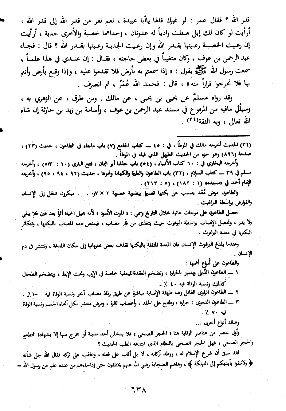 من قدر الله فقال عمر لو غيرك قالها يا أبا عبيدة بعم نفر من قدر الله إلى قدر الله أرأيت لو كان لك إبل هبطت واديا له عدوتان إحداهما خصبة والأخرى جدبة أرأيت إن رعيت الخصبة رعيتها بقدر الله وإن رعيت الجدبة رعيتها بقدر الله قال فجاء عبد الرحمن بن عوف وكان متغيبا في بعض حاجته فقال إن عندي في هذا علما سمعت رسول الله صلى الله عليه وسلم يقول إذا سمعتم به بأرض فلا تقدموا عليه وإذا وقع بأرض وأنتم بها فلا تخرجوا فرار منه قال فحمد الله عمر ثم انصرف وقد رواه مسلم عن يحيى بن يحيى عن مالك ومن طرق عن الزهري به وسيأتي ما فيه من المرفوع في مسند عبد الرحمن بن عوف واسامة بن زيد بن حارثة إن شاء اله تعالى وبه الثقة