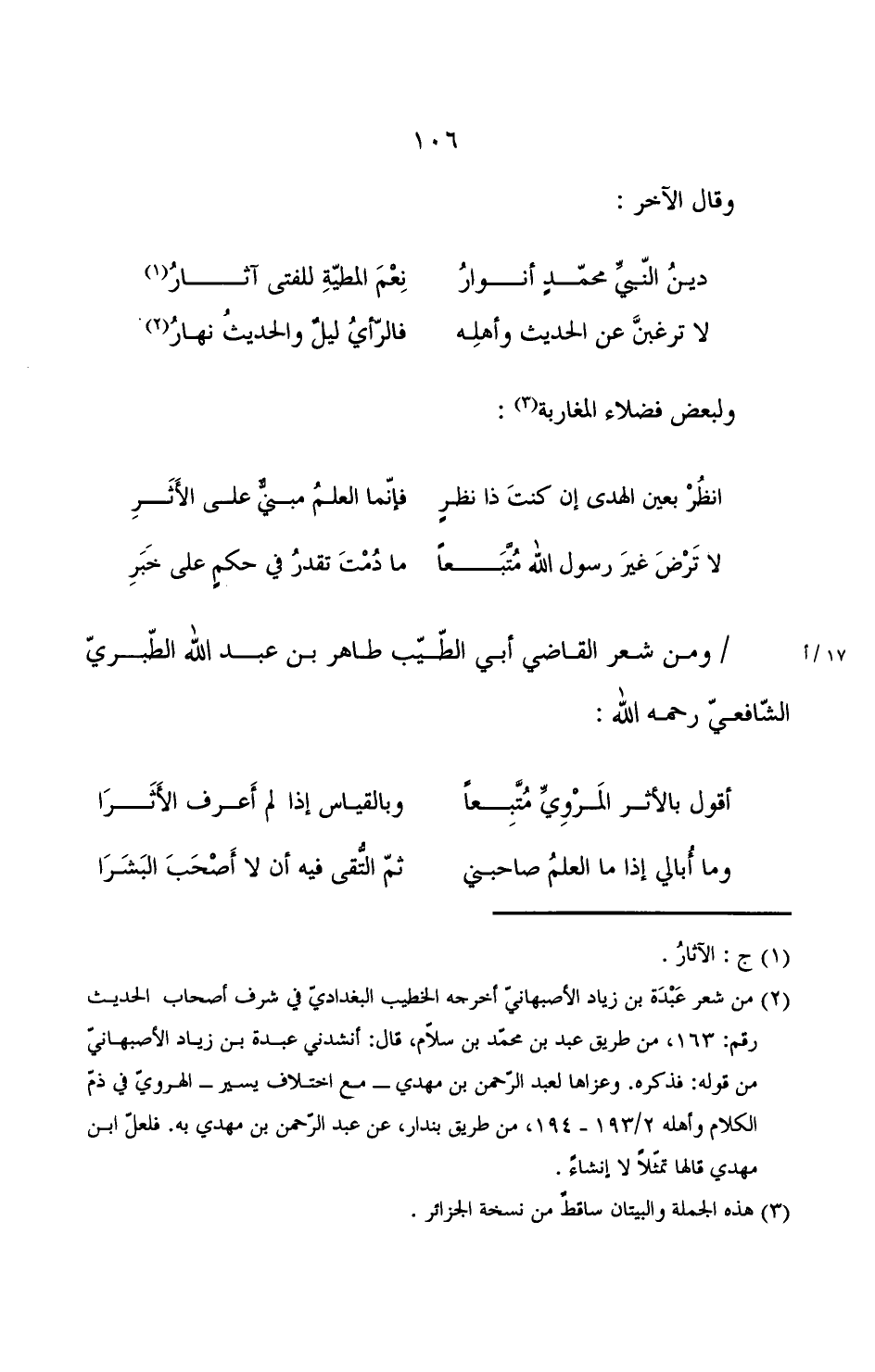 أقول بالأثر المروي متبعا. . . وبالقياس إذا لم أعرف الأثرا