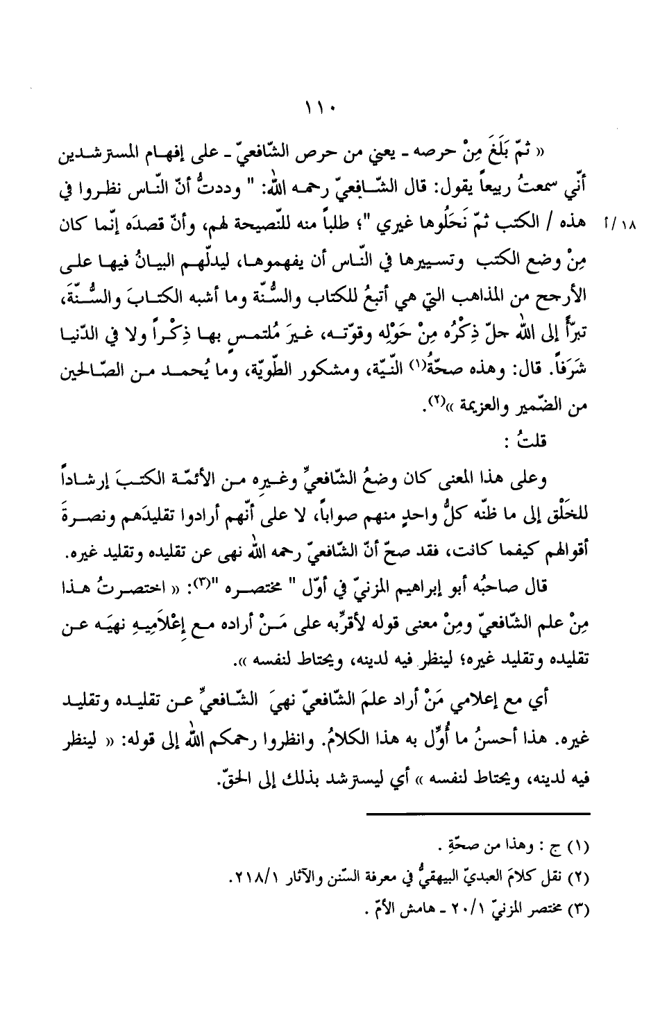 وعلى هذا المعنى كان وضع الشافعي وغيره من الأئمة الكتب إرشادا للخلق إلى ما ظنه كل واحد منهم صوابا, لا على أنهم أرادوا تقليدهم ونصرة أقوالهم كيفما كانت, فقد صح أن الشافعي رحمه الله نهى عن تقليده وتقليد غيره.