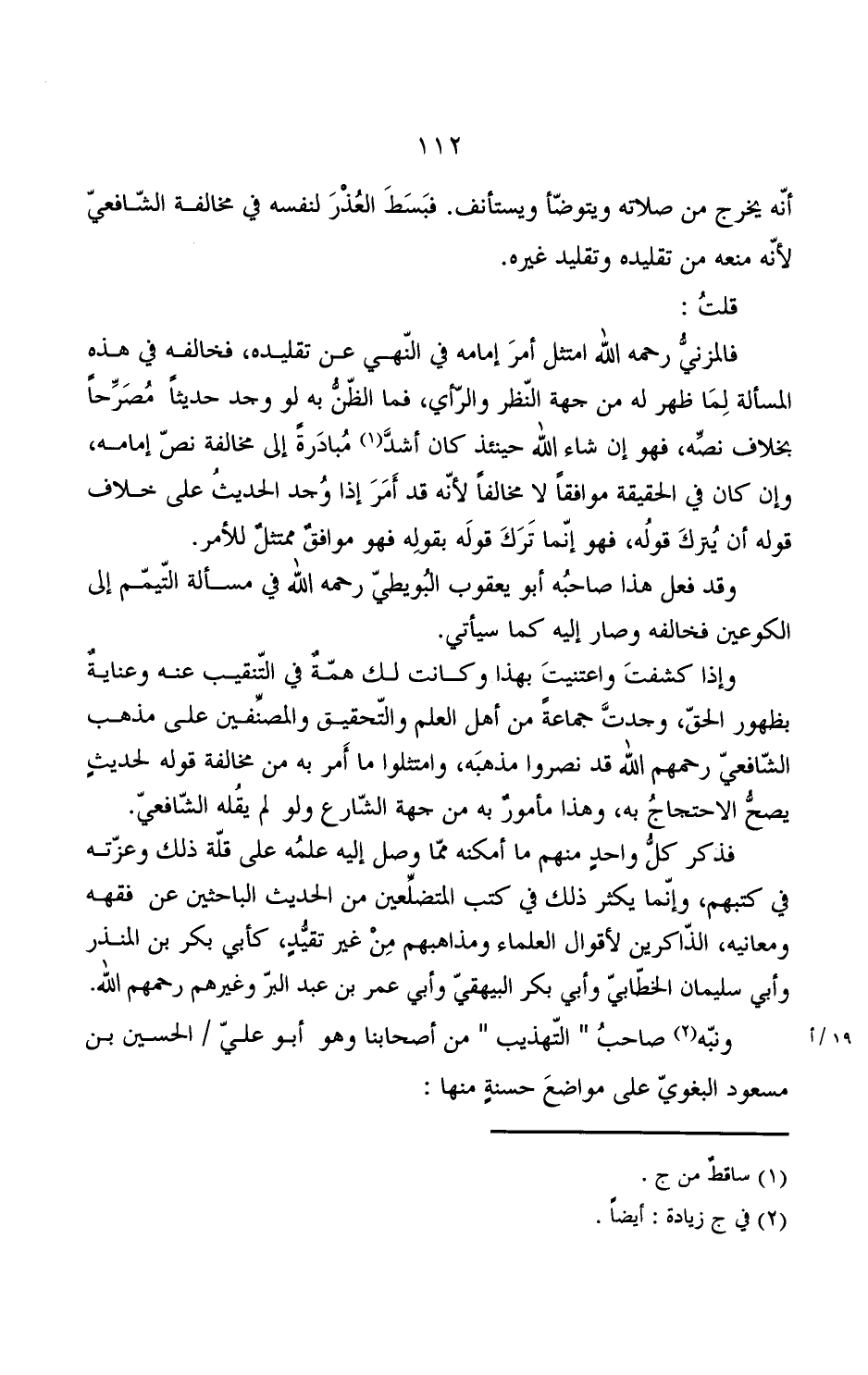 ونبه صاحب "التهذيب" من أصحابنا وهو أبو علي / الحسين بن مسعود البغوي على مواضع حسنة منها: