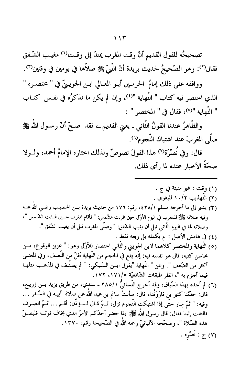 الذي اختصر فيه كتاب "النهاية", وإن لم يكن ما نذكره في نفس كتاب "النهاية", فقال في "المختصر": والظاهر عندنا القول الثاني - يعني القديم -, فقد صح أن رسول الله صلى الله عليه وسلم صلى المغرب عند اشتباك النجوم