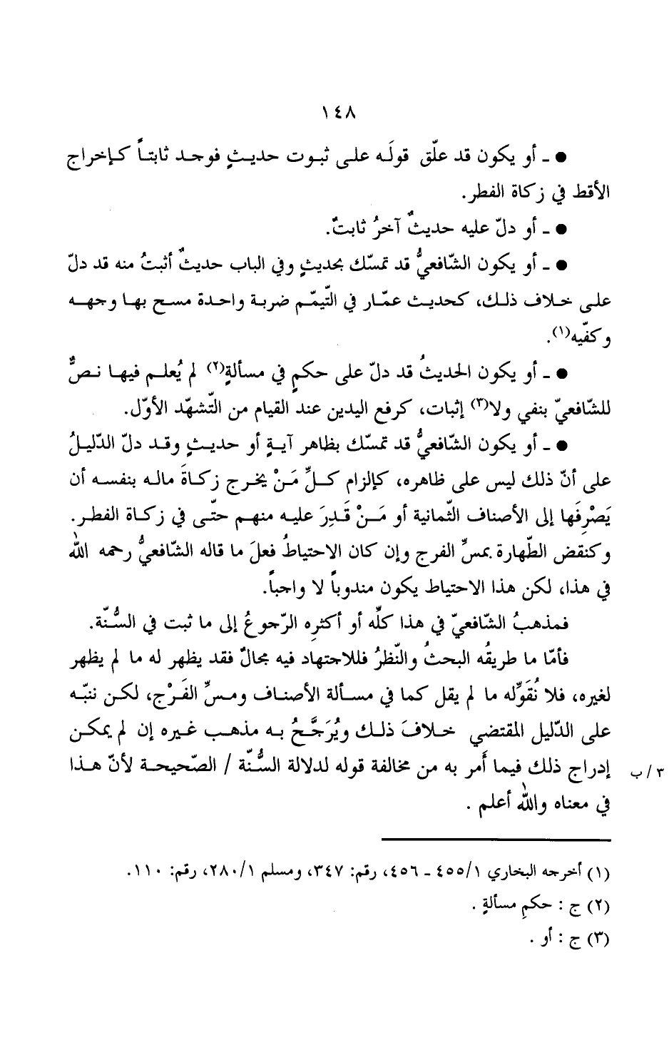 - أو يكون الحديث قد دل على حكم في مسألة لم يعلم فيها نص للشافعي بنفي ولا إثبات, كرفع اليدين عند القيام من التشهد الأول.