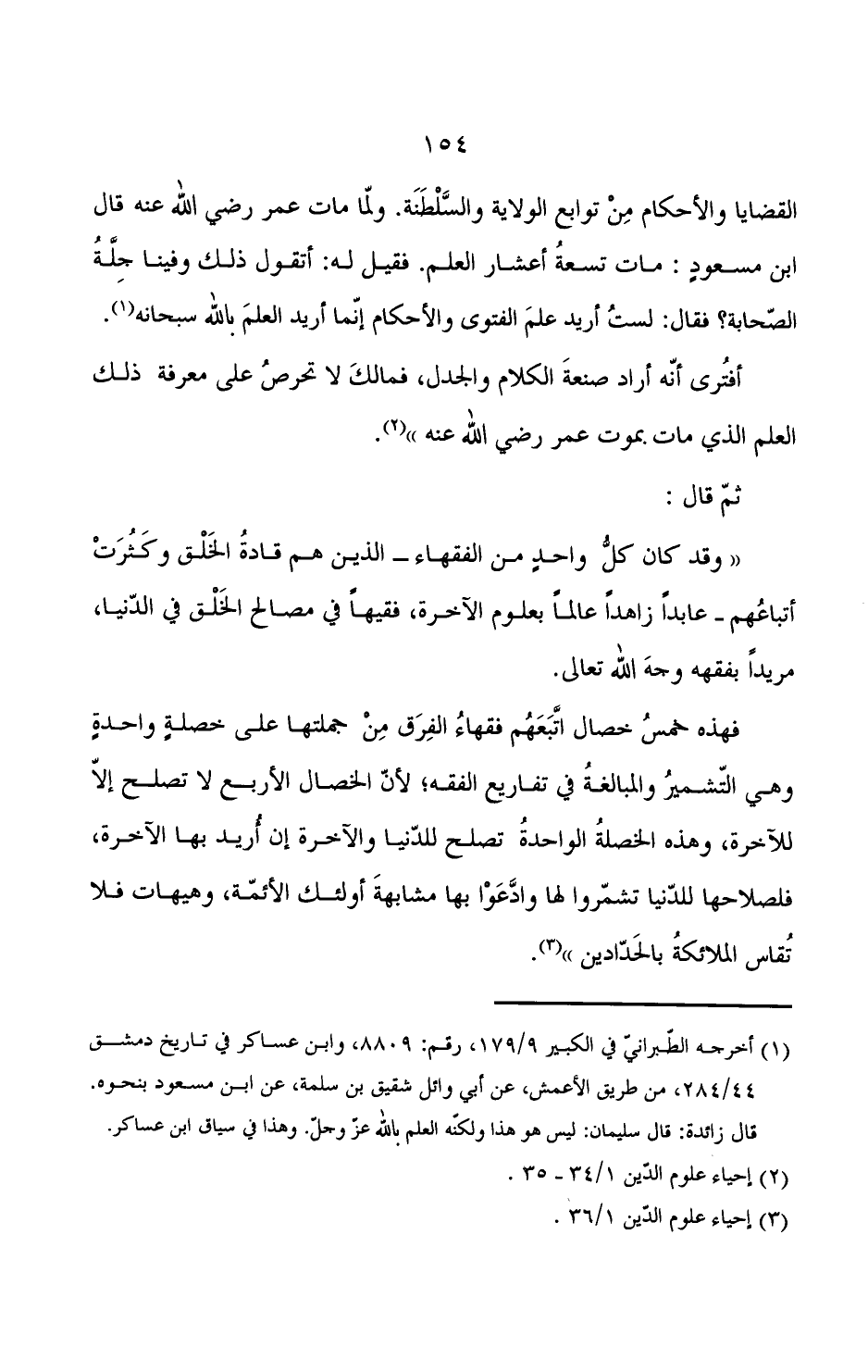 ((وقد كان كل واحد من الفقهاء - الذين هم قادة الخلق وكثرت أتباعهم - عابدا زاهدا عالما بعلوم الآخرة, فقيها في مصالح الخلق في الدنيا, مريدا بفقهه وجه الله تعالى.