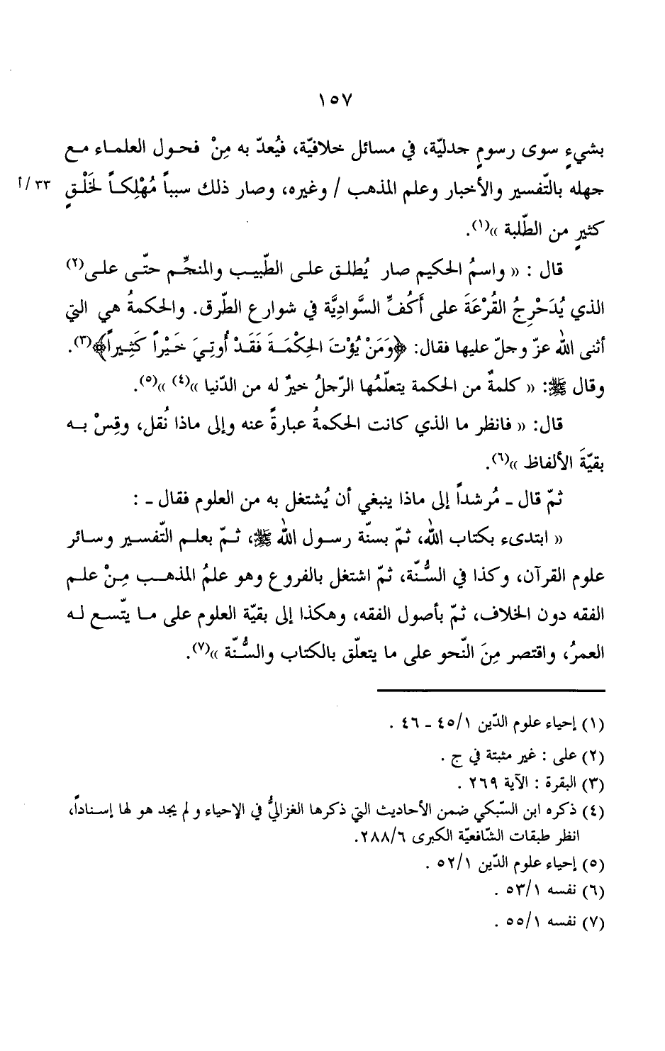 بشيء سوى رسوم جدلية, في مسائل خلافية, فيعد به من فحول العلماء مع جهله بالتفسير والأخبار وعلم المذهب / وغيره, وصار ذلك سببا مهلكا لخلق كثير من الطلبة)).