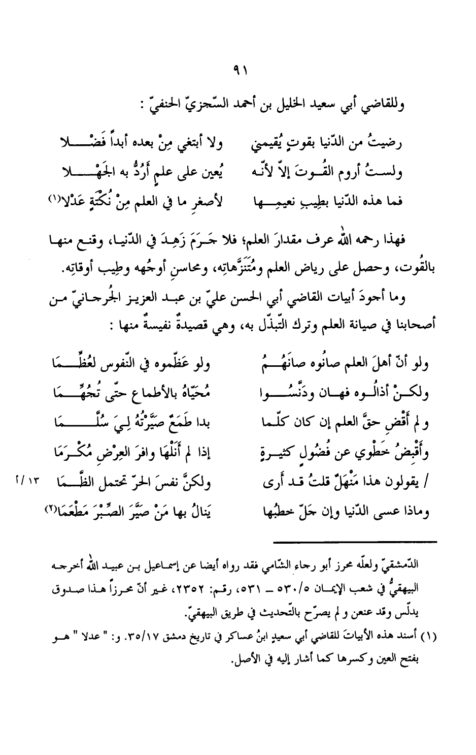 فهذه رحمة الله عرف مقدار العلم؛ فلا جرم زهد في الدنيا, وقنع منها بالقوت, وحصل على رياض العلم ومتنزهاته, ومحاسن أوجه وطيب أوقاته.