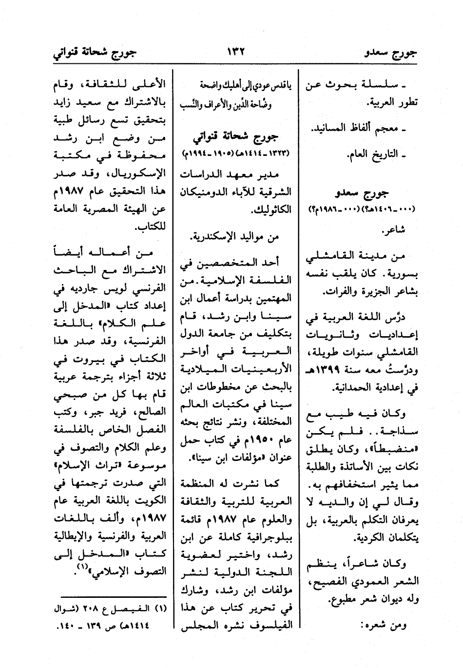 أحد المتخصصين في الفلسفة الإسلامية. من المهتمين بدراسة أعمال ابن سينا وابن رشد، قام بتكليف من جامعة الدول العربية في أواخر الأربعينيات الميلادية بالبحث عن مخطوطات ابن سينا في مكتبات العالم المختلفة، ونشر نتائج بحثه عام 1950 م في كتاب حمل عنوان "مؤلفات ابن سينا".