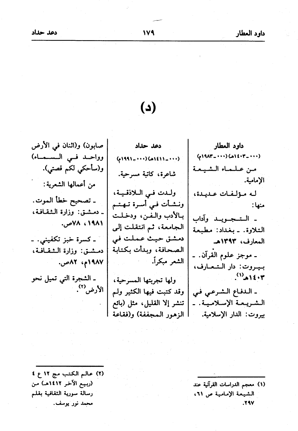 (¬2) عالم الكتب مج 12 ع 4 (ربيع الآخر 1412 هـ) من رسالة سورية الثقافية بقلم محمد نور يوسف.