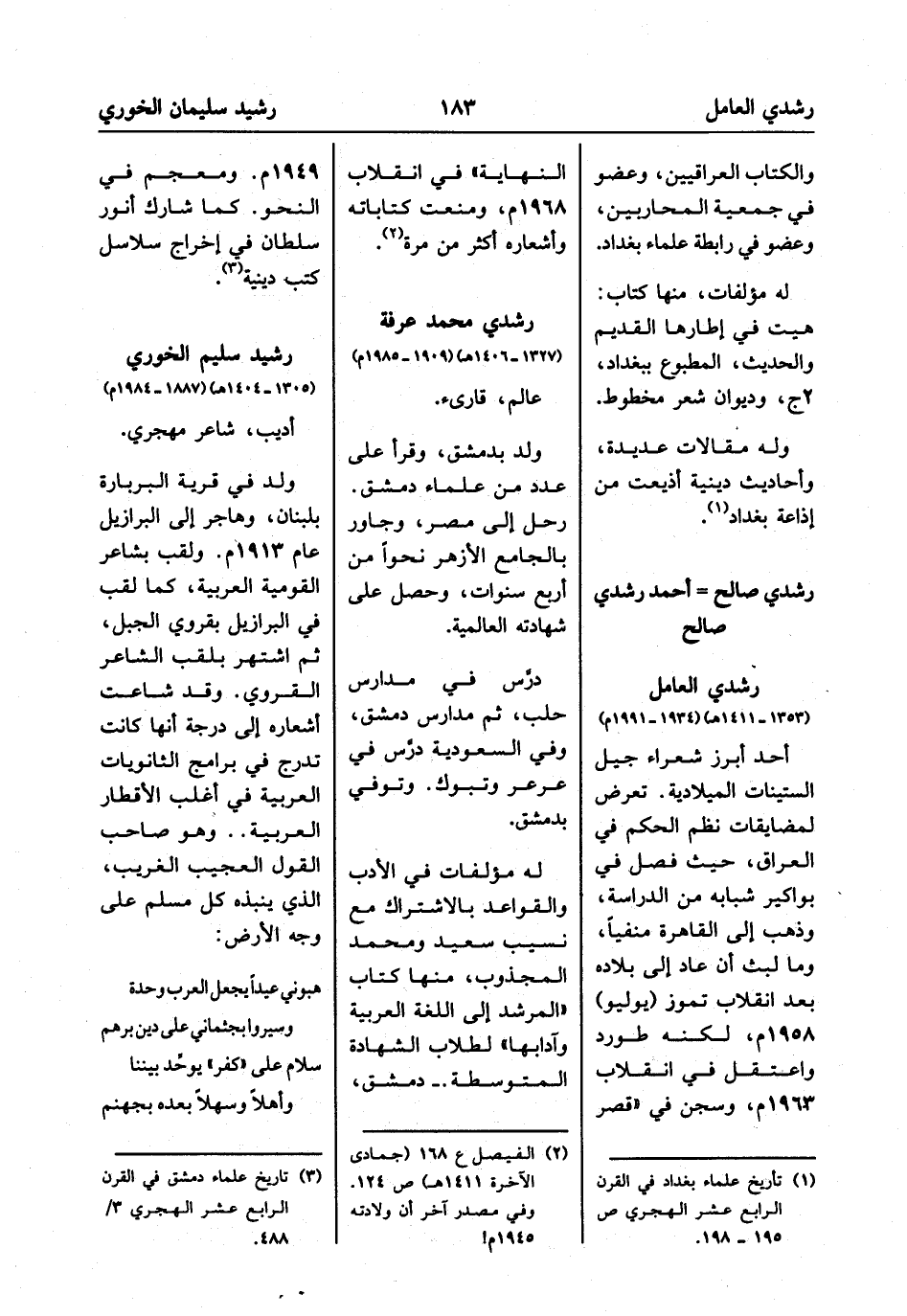 (¬1) تاريخ علماء بغداد في القرن الرابع عشر الهجري ص 195 - 198.