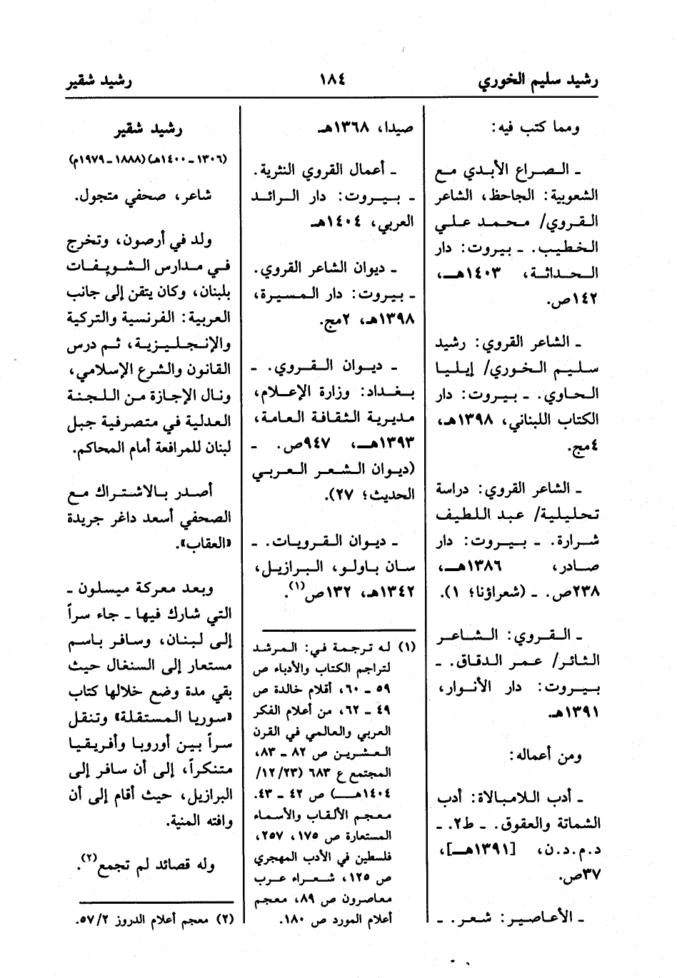- الشاعر القروي: رشيد سليم الخوري/إيليا الحاوي. - بيروت: دار الكتاب اللبناني، 1398 هـ، 4 مج.