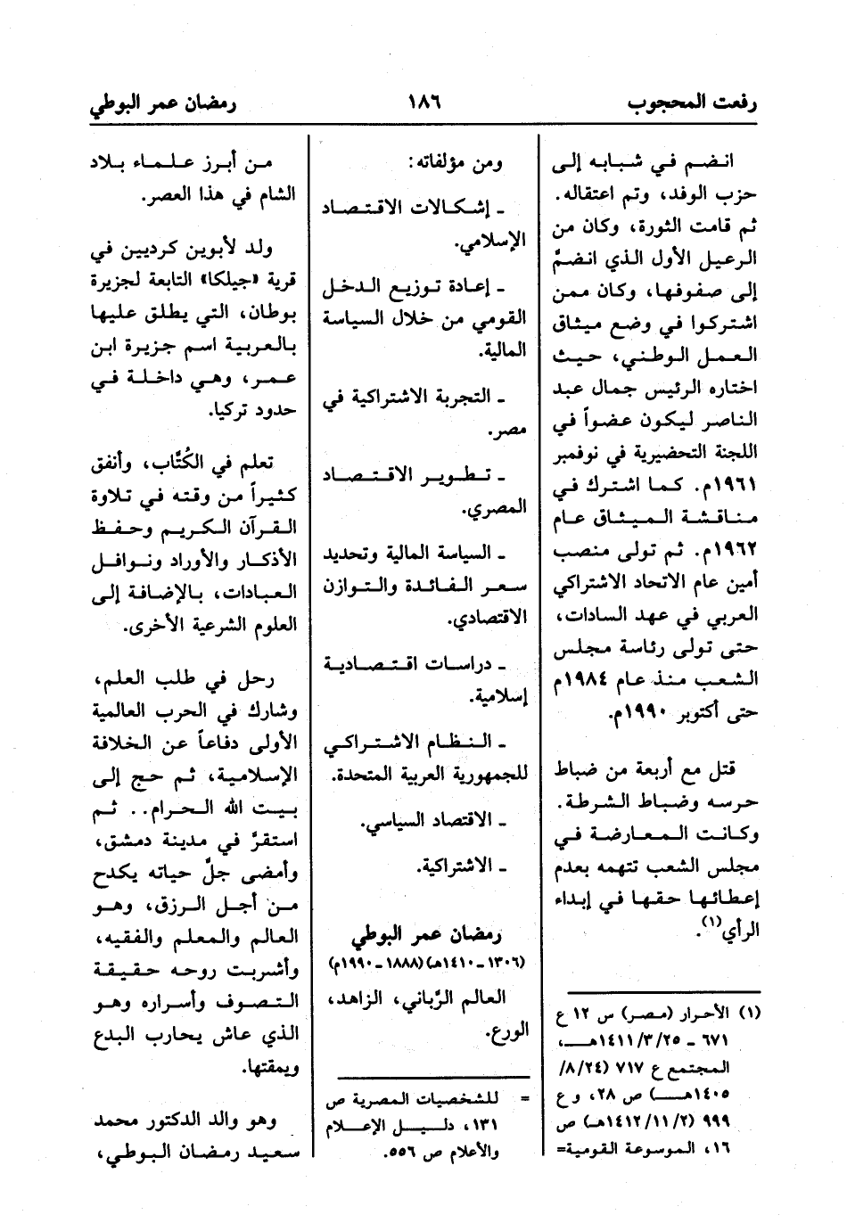 (¬1) الأحرار (مصر) س 12 ع 671 - 25/ 3/1411 هـ، المجتمع ع 4717 (24/ 8/1405 هـ) ص 28، وع 999 (2/ 11/1412 هـ) ص 16، الموسوعة القومية =