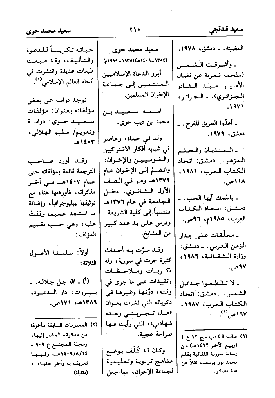 (¬1) عالم الكتب مج 12 ع 4 (ربيع الآخر 1412 هـ) من رسالة سورية الثقافية بقلم محمد نور يوسف، نقلاً عن عدة مصار.