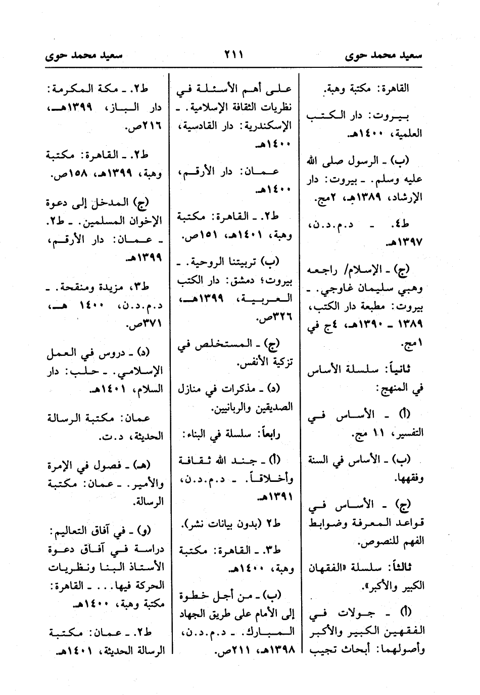 (ب) تربيتنا الروحية. - بيروت؛ دمشق: دار الكتب العربية، 1399 هـ، 326 ص.