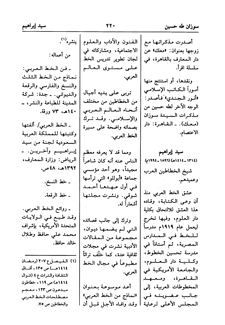 (¬1) الفيصل ع 207 (رمضان 1414 هـ ص 135، آفاق الثقافة والتراث ع 4 (شوال 1414 هـ ص 119، خطاطون مبدعون ص 123، معجم مصطلحات الخط العربي والخطاطين ص 75.