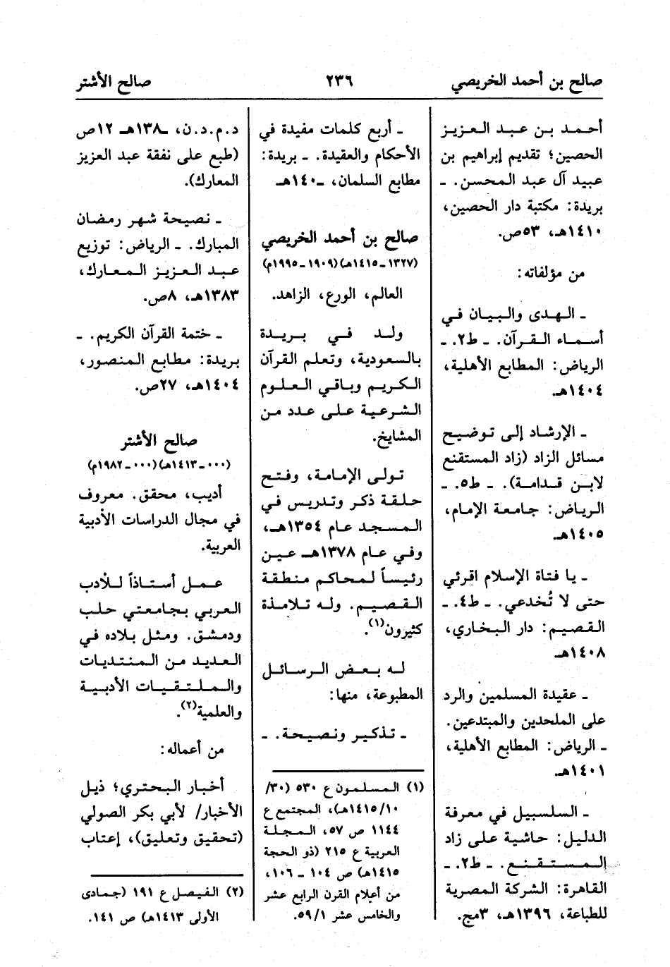 (¬1) المسلمون ع 530 (30/ 10/1415 هـ)، المجتمع ع 1144 ص 57، المجلة العربية ع 215 (ذو الحجة 1415 هـ) ص 104 - 106، من أعلام القرن الرابع عشر والخامس عشر 1/ 59.