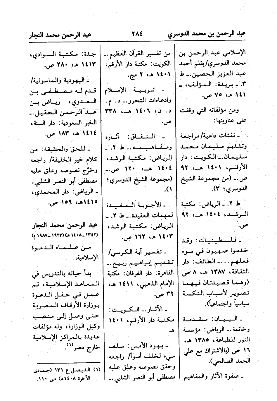 - نفثات داعية/مراجعة وتقديم سليمان محمد سليمان. - الكويت: دار الأرقم، 1401 هـ، 92 ص. - (من مجموعة الشيخ الدوسري؛ 3).