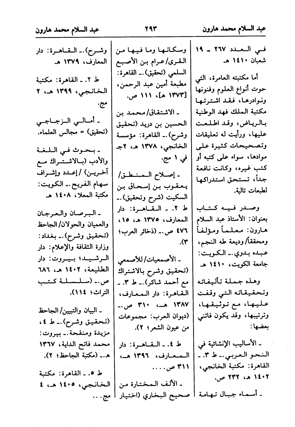 - إصلاح المنطق/يعقوب بن إسحاق بن السكيت (شرح وتحقيق). - ط 2. - القاهرة: دار المعارف، 1375 هـ، 15، 476 ص. - (ذخائر العرب؛ 3).