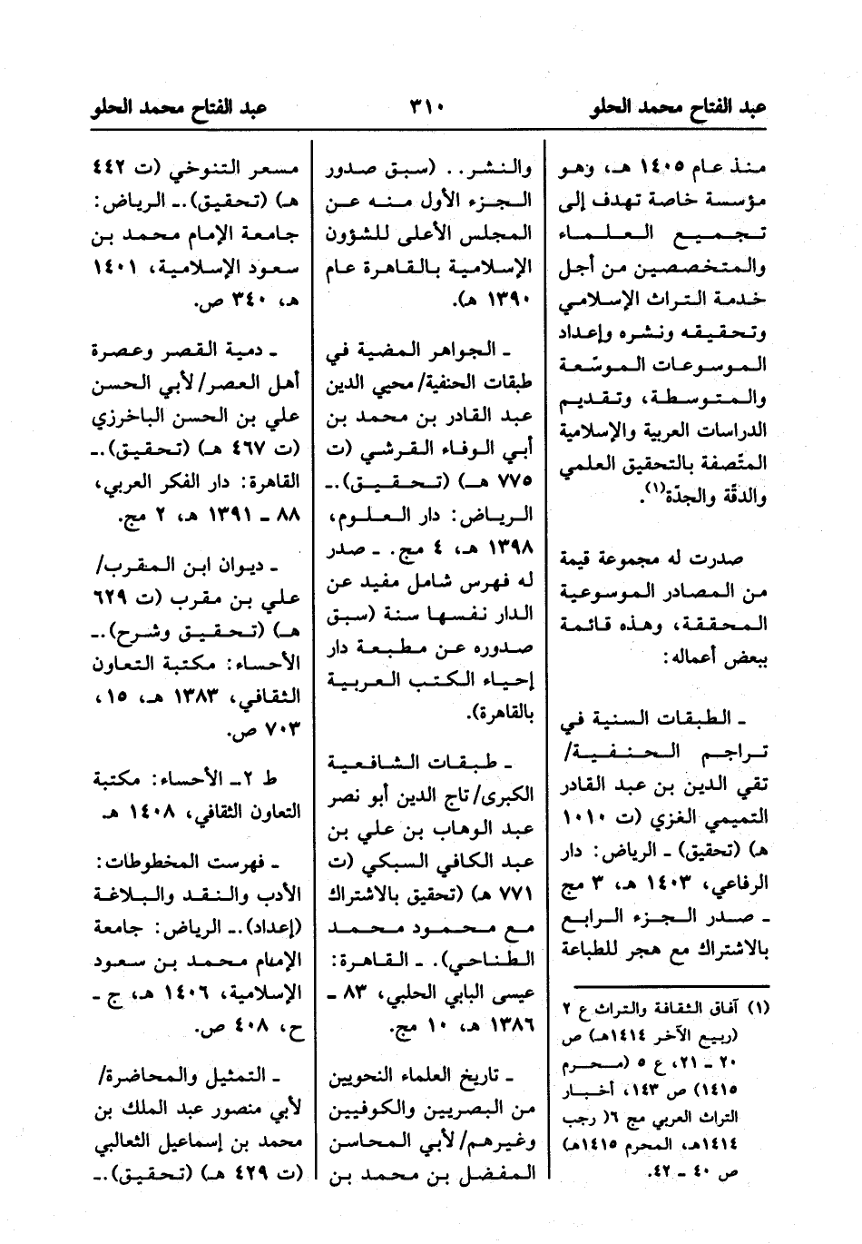 - الطبقات السنية في تراجم الحنفية/تقي الدين بن عبد القادر التميمي الغزي (ت 1010 هـ) (تحقيق) - الرياض: دار الرفاعي، 1403 هـ، 3 مج - صدر الجزء الرابع بالاشتراك مع هجر للطباعة