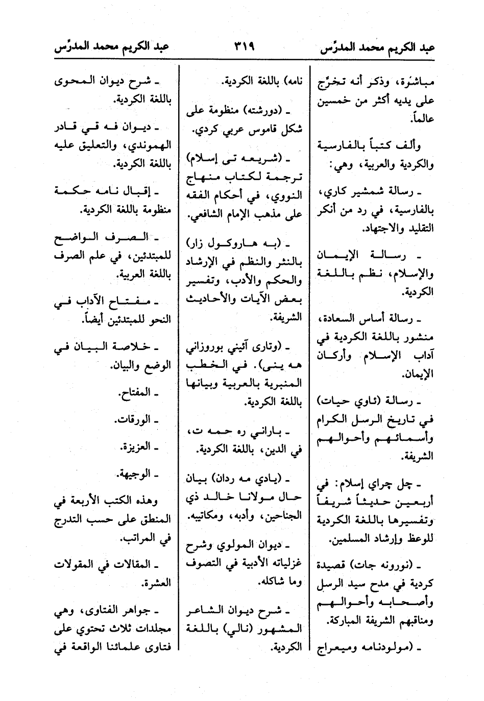 وألف كتباً بالفارسية والكردية والعربية، وهي: