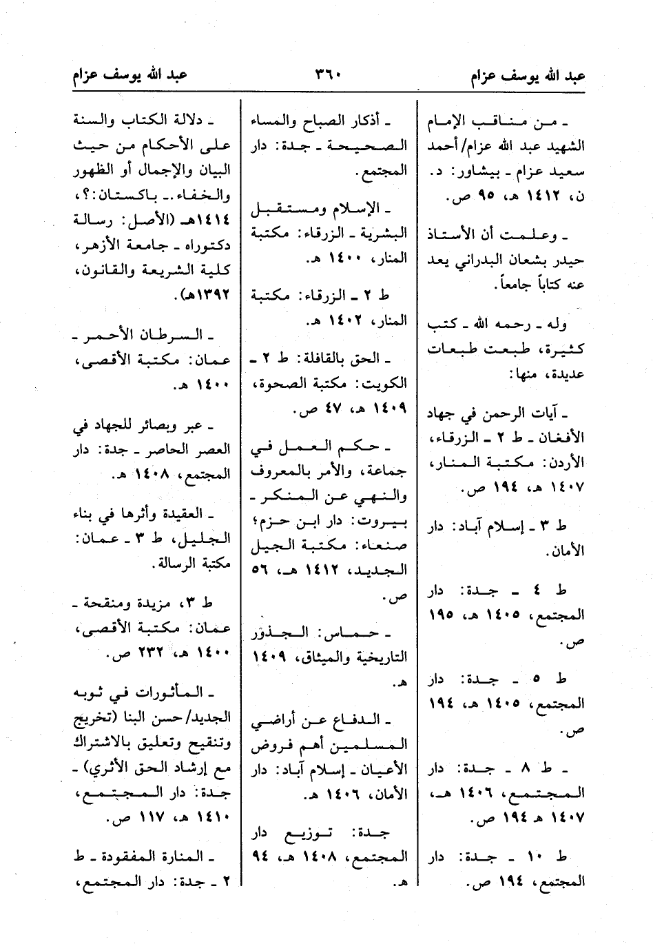 - من مناقب الإمام الشهيد عبد الله عزام/أحمد سعيد عزام - بيشاور: د. ن، 1412 هـ، 95 ص.