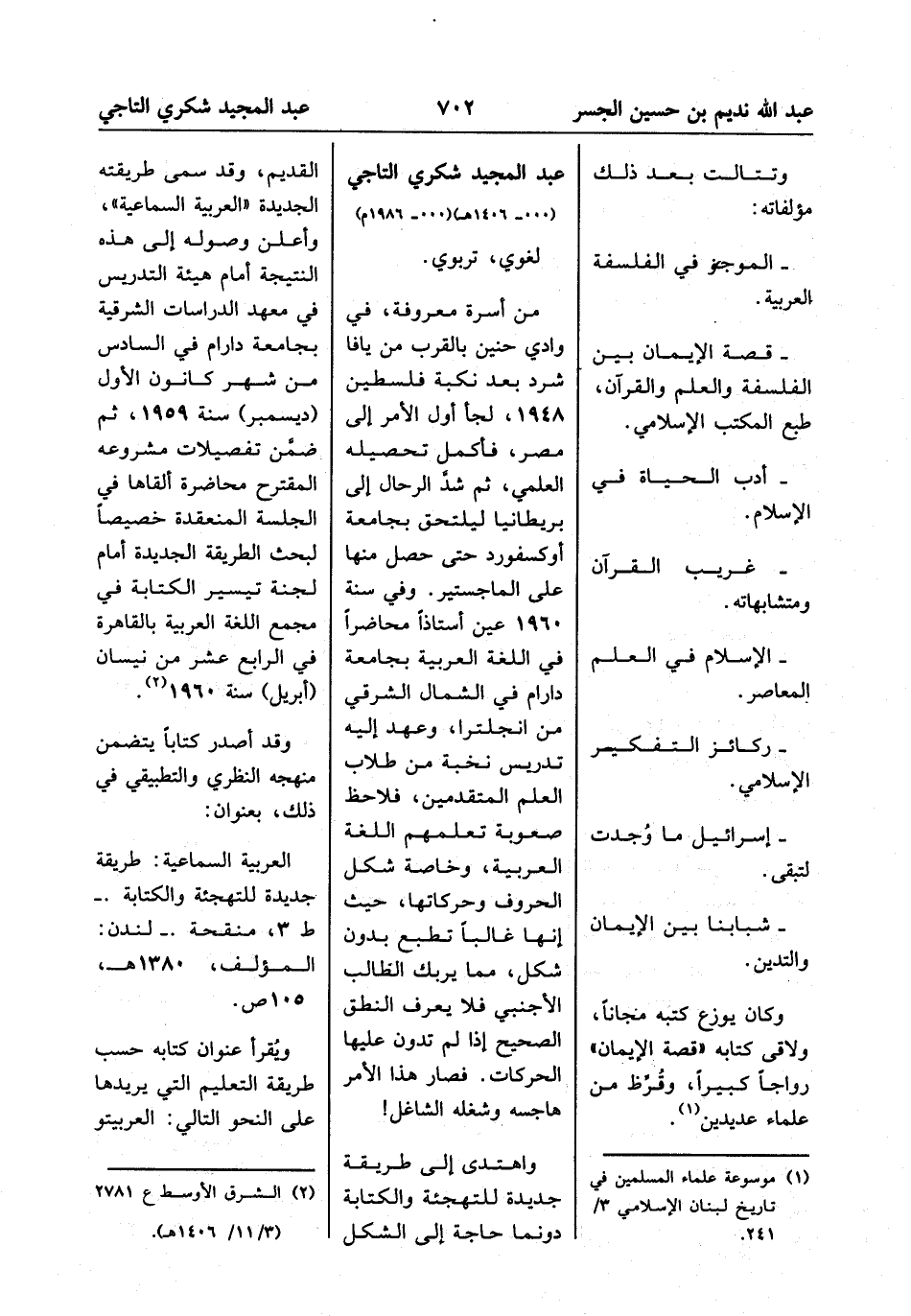 (¬1) موسوعة علماء المسلمين في تاريخ لبنان الإسلامي 3/ 241.