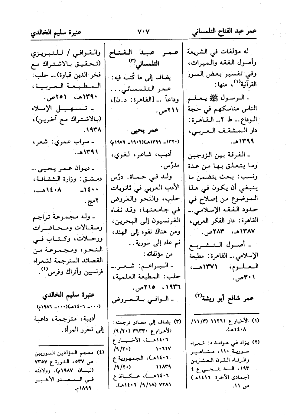 (¬4) معجم المؤلفين السوريين ص 537، الثورة ع 7357 (نيسان 1987 م). وولادته في المصدر الأخير 1899 م.