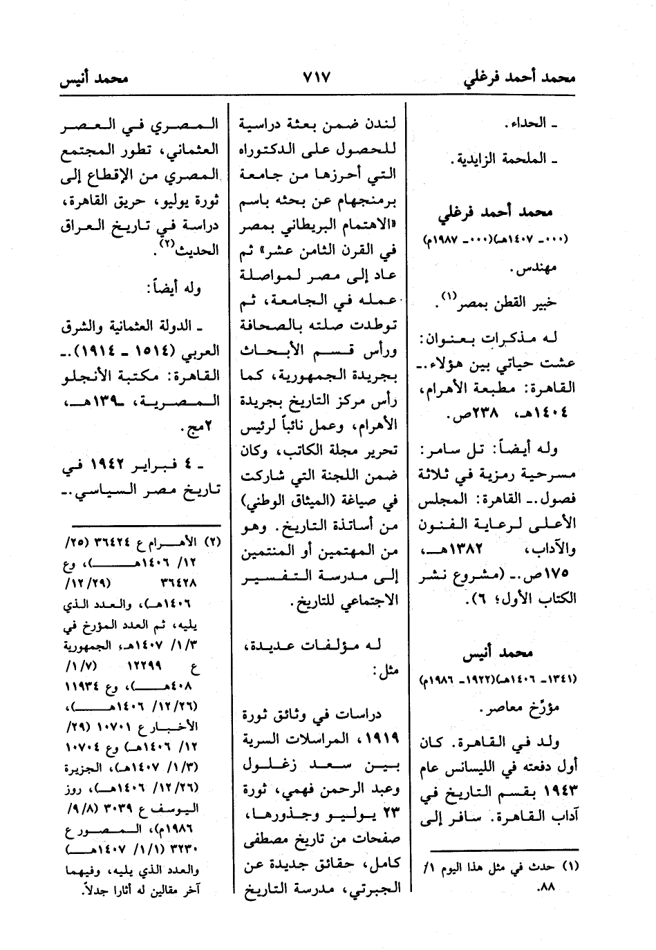 (¬2) الأهرام ع 36424 (25/ 12/1406 هـ)، وع 36428 (29/ 12/1406 هـ)، والعدد الذي يليه، ثم العدد المؤرخ في 3/ 1/1407 هـ؛ الجمهورية ع 12299 (7/ 1/1408 هـ)، وع 11934 (26/ 12/1406 هـ)، الأخبار ع 10701 (29/ 12/1406 هـ) وع 10704 (3/ 1/1407 هـ)، الجزيرة (26/ 12/1406 هـ)، روز اليوسف ع 3039 (8/ 9/1986 م)، المصور ع 3230 (1/ 1/1407 هـ) والعدد الذي يليه، وفيهما آخر مقالين له أثارا جدلاً.