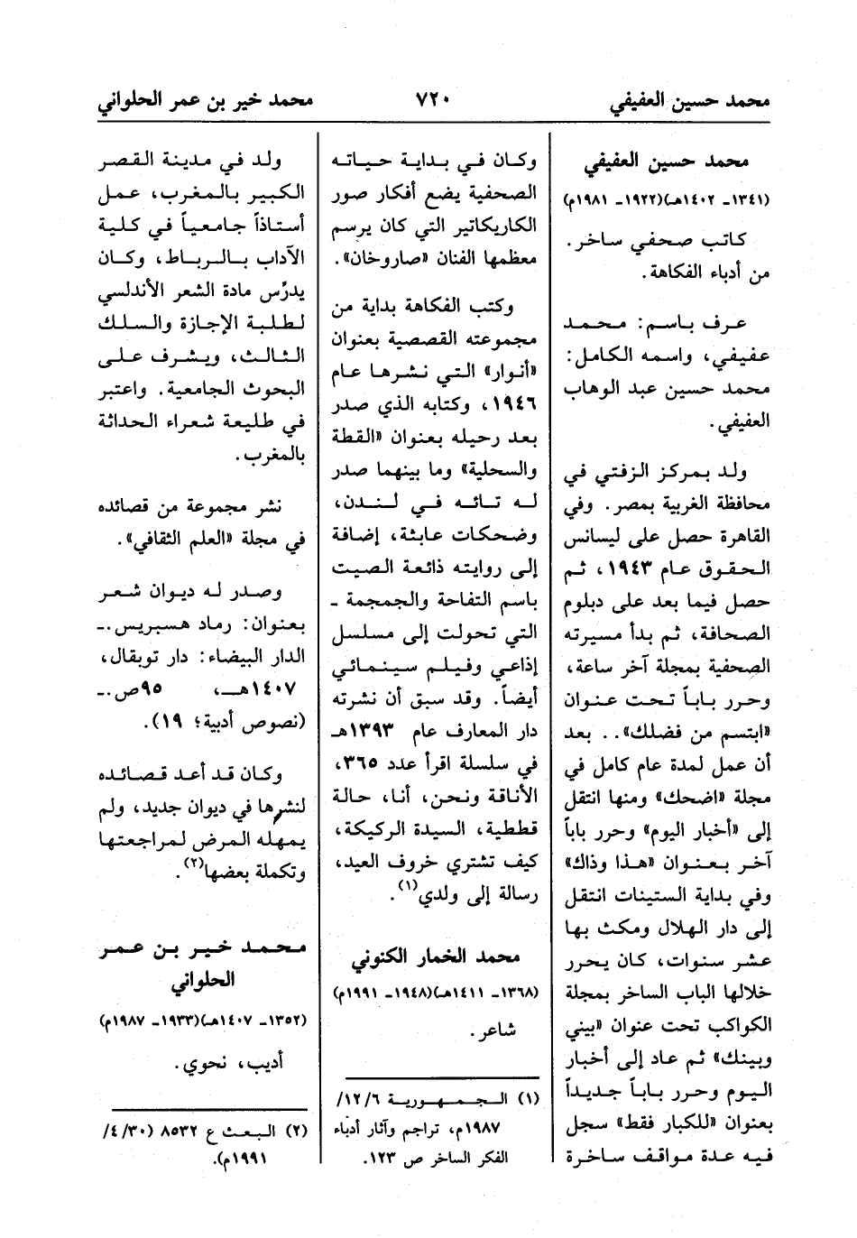 (¬1) الجمهورية 6/ 12/1987 م، تراجم وآثار أدباء الفكر الساخر ص 123.