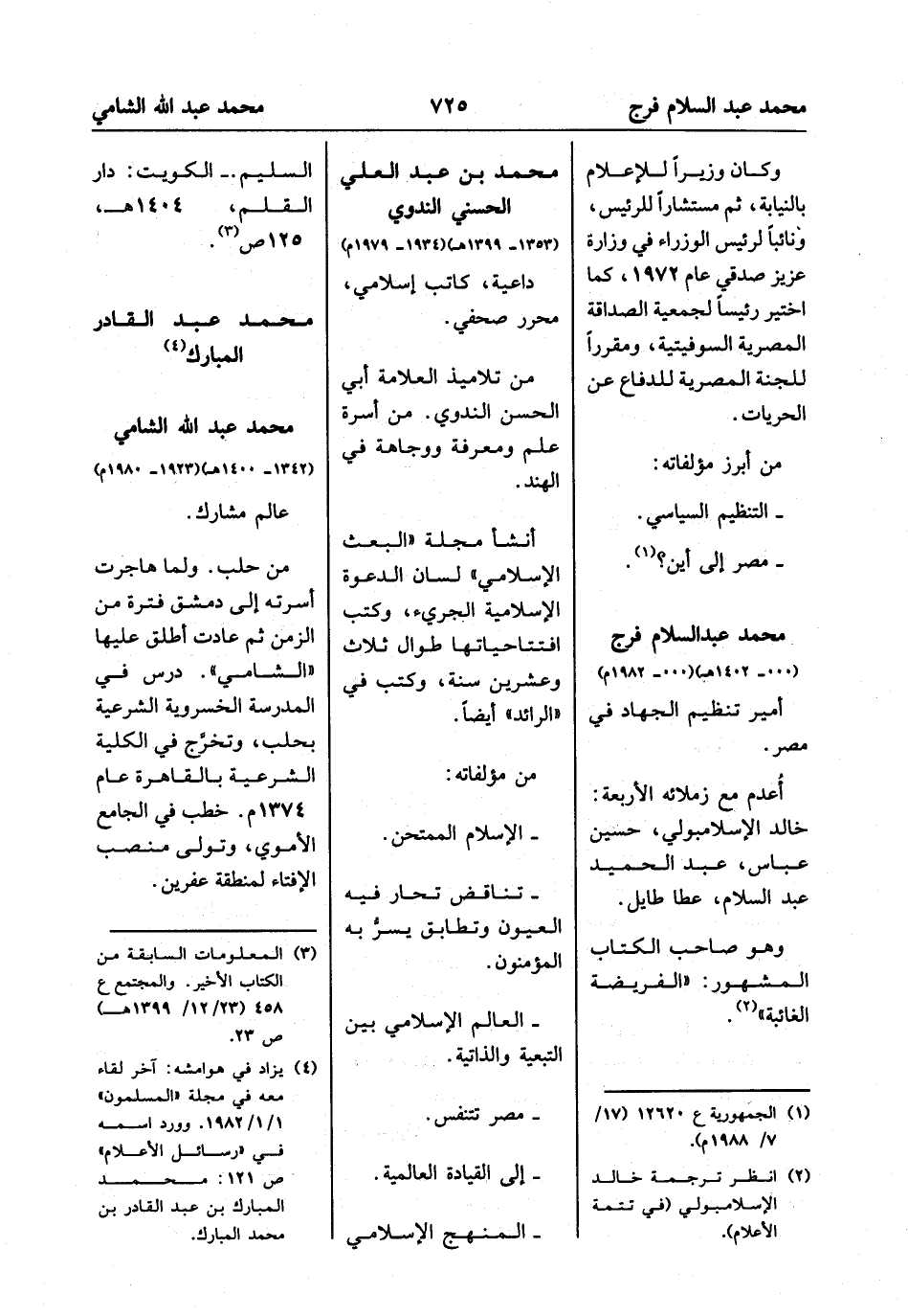 (¬4) يزاد في هوامشه: آخر لقاء معه في مجلة "المسلمون" 1/ 1/1982. وورد اسمه في "رسائل الأعلام" ْص 121: محمد المبارك بن عبد القادر بن محمد المبارك.
