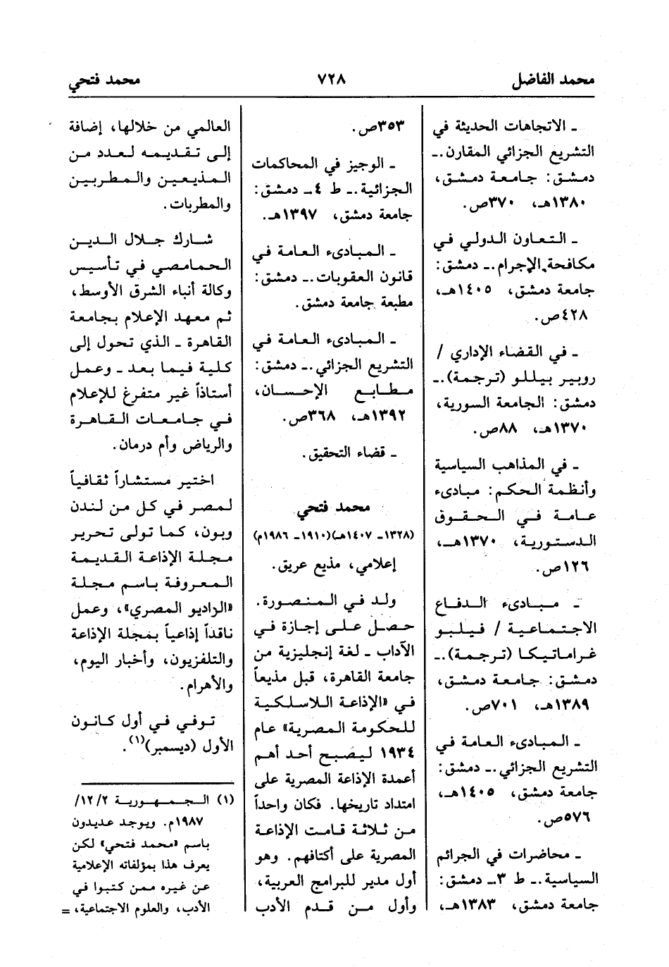 (¬1) الجمهورية 2/ 12/1987 م. ويوجد عديدون باسم "محمد فتحي" لكن يعرف هذا بمؤلفاته الإعلامية عن غيره ممن كتبوا في الأدب، والعلوم الاجتماعية، =