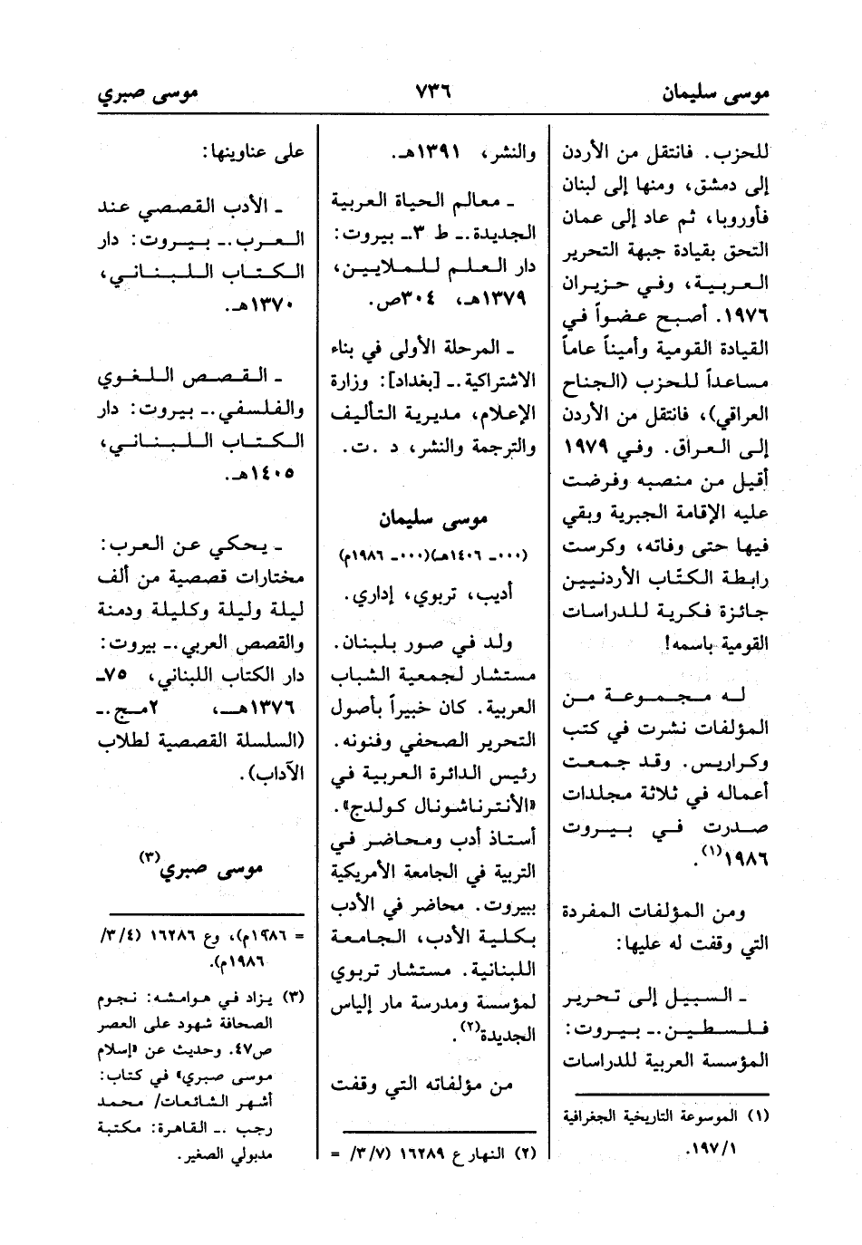 (¬3) يزاد في هوامشه: نجوم الصحافة شهود على العصر ص 47. وحديث عن "إسلام موسى صبري" في كتاب: أشهر الشائعات/محمد رجب. - القاهرة: مكتبة مدبولي الصغير.