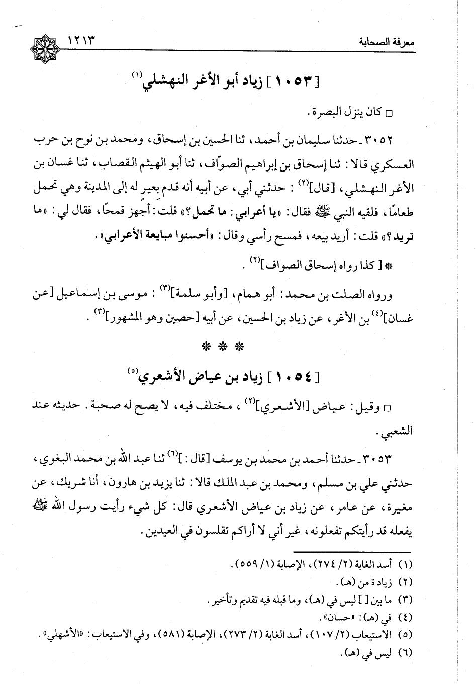 ٣٠٥٢ - حَدَّثَنَا سُلَيْمَانُ بْنُ أَحْمَدَ، ثنا الْحُسَيْنُ بْنُ إِسْحَاقَ، وَمُحَمَّدُ بْنُ نُوحِ بْنِ حَرْبٍ الْعَسْكَرِيُّ، قَالَا: ثنا إِسْحَاقُ بْنُ إِبْرَاهِيمَ الصَّوَّافُ، ثنا أَبُو الْهَيْثَمِ الْقَصَّابُ، ثنا غَسَّانُ بْنُ الْأَغَرِّ النَّهْشَلِيُّ، قَالَ: حَدَّثَنِي أَبِي، عَنْ أَبِيهِ، أَنَّهُ قَدِمَ بِعِيرٍ لَهُ إِلَى الْمَدِينَةِ وَهِيَ تَحْمِلُ طَعَامًا، فَلَقِيَهُ النَّبِيُّ صَلَّى اللَّهُ عَلَيْهِ وَسَلَّمَ، فَقَالَ: «يَا أَعْرَابِيُّ، مَا تَحْمِلُ؟» قُلْتُ: أُجَهِّزُ قَمْحًا، فَقَالَ لِي: «مَا تُرِيدُ؟» قُلْتُ: أُرِيدُ بَيْعَهُ، فَمَسَحَ رَأْسِي وَقَالَ: «أَحْسِنُوا مُبَايَعَةَ الْأَعْرَابِيِّ» كَذَا رَوَاهُ إِسْحَاقُ الصَّوَّافُ. وَرَوَاهُ الصَّلْتُ بْنُ مُحَمَّدٍ أَبُو هَمَّامٍ، وَأَبُو سَلَمَةَ مُوسَى بْنُ إِسْمَاعِيلَ، عَنْ غَسَّانَ بْنِ الْأَغَرِّ، عَنْ زِيَادِ بْنِ الْحُسَيْنِ، عَنْ أَبِيهِ حُصَيْنٍ، وَهُوَ الْمَشْهُورُ