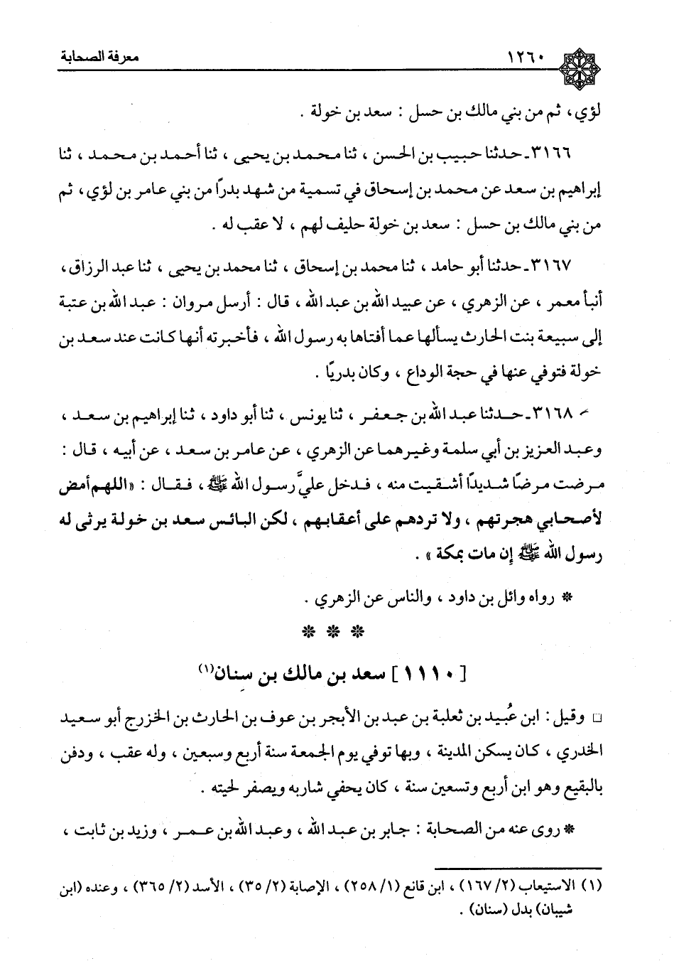 ٣١٦٦ - حَدَّثَنَا حَبِيبُ بْنُ الْحَسَنِ، ثنا مُحَمَّدُ بْنُ يَحْيَى، ثنا أَحْمَدُ بْنُ مُحَمَّدٍ، ثنا إِبْرَاهِيمُ بْنُ سَعْدٍ، عَنْ مُحَمَّدِ بْنِ إِسْحَاقَ، فِي تَسْمِيَةِ مَنْ شَهِدَ بَدْرًا مِنْ بَنِي عَامِرِ بْنِ لُؤَيٍّ، ثُمَّ مِنْ بَنِي مَالِكِ بْنِ حَسَلٍ: سَعْدُ بْنُ خَوْلَةَ حَلِيفٌ لَهُمْ، لَا عَقِبَ لَهُ
