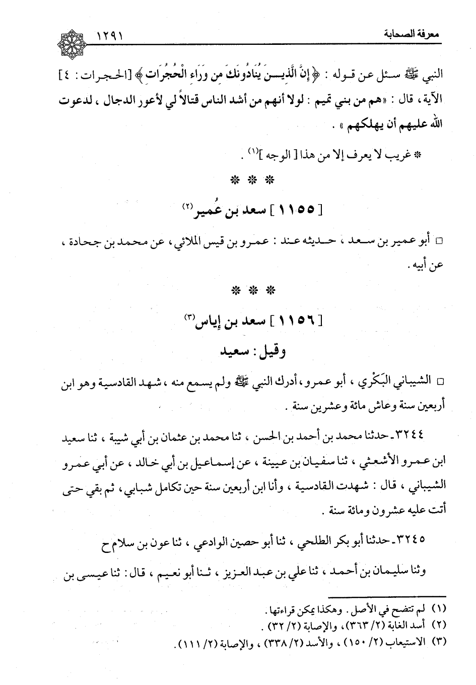 سَعْدُ بْنُ إِيَاسٍ وَقِيلَ: سَعِيدٌ الشَّيْبَانِيُّ الْبَكْرِيُّ، أَبُو عَمْرٍو، أَدْرَكَ النَّبِيُّ صَلَّى اللَّهُ عَلَيْهِ وَسَلَّمَ وَلَمْ يَسْمَعْ مِنْهُ، شَهِدَ الْقَادِسِيَّةَ وَهُوَ ابْنُ أَرْبَعِينَ سَنَةً وَعَاشَ مِائَةً وَعِشْرِينَ سَنَةً