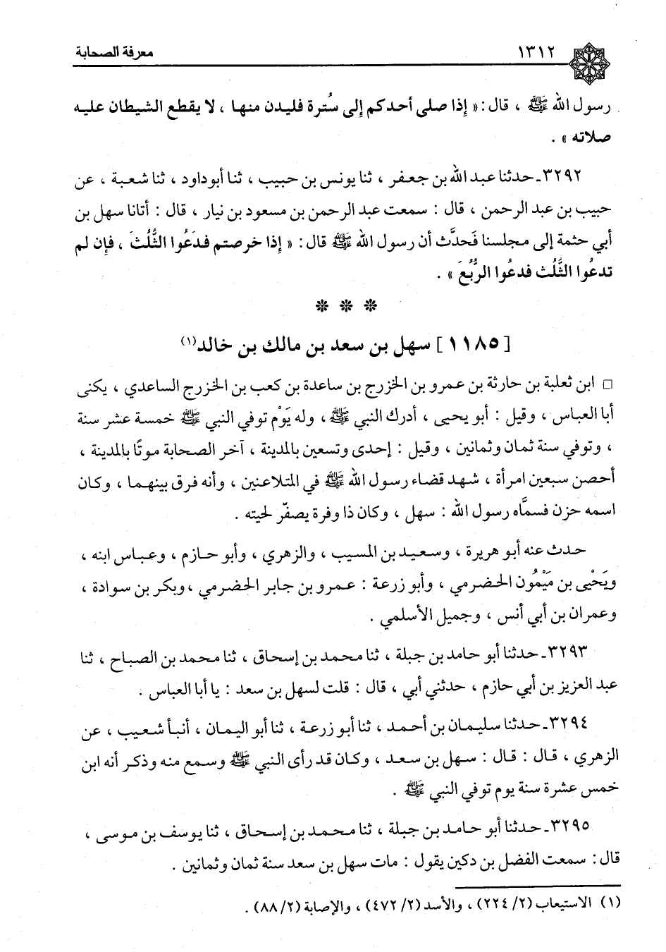 ٣٢٩٥ - حَدَّثَنَا أَبُو حَامِدِ بْنُ جَبَلَةَ، ثنا مُحَمَّدُ بْنُ إِسْحَاقَ، ثنا يُوسُفُ بْنُ مُوسَى، قَالَ: سَمِعْتُ الْفَضْلَ بْنَ دُكَيْنٍ، يَقُولُ: مَاتَ سَهْلُ بْنُ سَعْدٍ سَنَةَ ثَمَانٍ وَثَمَانِينَ
