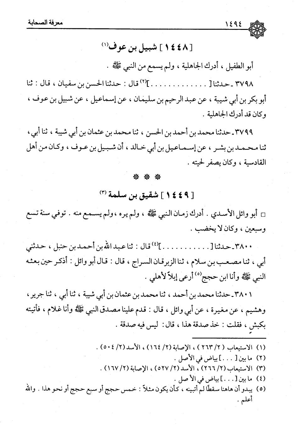 ٣٨٠٠ - حَدَّثَنَا. . . قَالَ: ثنا عَبْدُ اللهِ بْنُ أَحْمَدَ بْنِ حَنْبَلٍ، حَدَّثَنِي أَبِي، ثنا مُصْعَبُ بْنُ سَلَّامٍ، ثنا الزِّبْرِقَانُ السَّرَّاجُ، قَالَ: قَالَ أَبُو وَائِلٍ: «أَذْكُرُ حِينَ بَعَثَهُ النَّبِيُّ صَلَّى اللَّهُ عَلَيْهِ وَسَلَّمَ وَأَنَا ابْنُ حِجَجٍ أَرْعَى إِبِلًا لِأَهْلِي»