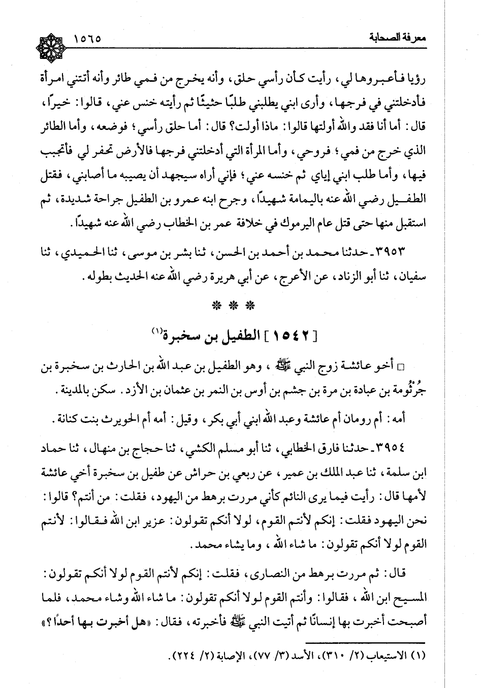 ٣٩٥٥ - حَدَّثَنَا الْحَسَنُ بْنُ عِلَّانَ، ثنا ابْنُ نَاجِيَةَ، وَابْنُ، مَنِيعٍ، قَالَا: ثنا عَبْدُ الْوَاحِدِ بْنُ غِيَاثٍ، ثنا حَمَّادُ بْنُ سَلَمَةَ، عَنْ عَبْدِ الْمَلِكِ بْنِ عُمَيْرٍ، عَنْ رِبْعِيِّ بْنِ حِرَاشٍ، عَنْ طُفَيْلِ بْنِ سَخْبَرَةَ، أَخِي عَائِشَةَ لِأُمِّهَا قَالَ: رَأَيْتُ فِيمَا يَرَى النَّائِمُ فَذَكَرَ مِثْلَهُ، وَقَالَ: فَقَامَ رَسُولُ اللهِ صَلَّى اللَّهُ عَلَيْهِ وَسَلَّمَ خَطِيبًا بِالْمَسْجِدِ فَحَمِدَ اللهَ وَأَثْنَى عَلَيْهِ، ثُمَّ قَالَ: " أَمَّا بَعْدُ: فَإِنَّ طُفَيْلًا رَأَى رُؤْيَا فَأَخْبَرَ بِهَا مَنْ أَخْبَرَ مِنْكُمْ " فَذَكَرَ مِثْلَهُ رَوَاهُ شُعْبَةُ، وَأَبُو عَوَانَةَ، وَزَيْدُ بْنُ أَبِي أُنَيْسَةَ، عَنْ عَبْدِ الْمَلِكِ بْنِ عُمَيْرٍ، عَنْ رِبْعِيٍّ نَحْوَهُ، وَلَمْ يَذْكُرُوا: أَمَّا بَعْدُ. وَرَوَاهُ ابْنُ عُيَيْنَةَ، عَنْ عَبْدِ الْمَلِكِ بْنِ عُمَيْرٍ، عَنْ حُذَيْفَةَ وَرَوَاهُ مَعْمَرٌ، عَنْ عَبْدِ الْمَلِكِ بْنِ عُمَيْرٍ فَقَالَ: عَنْ جَابِرِ بْنِ سَمُرَةَ