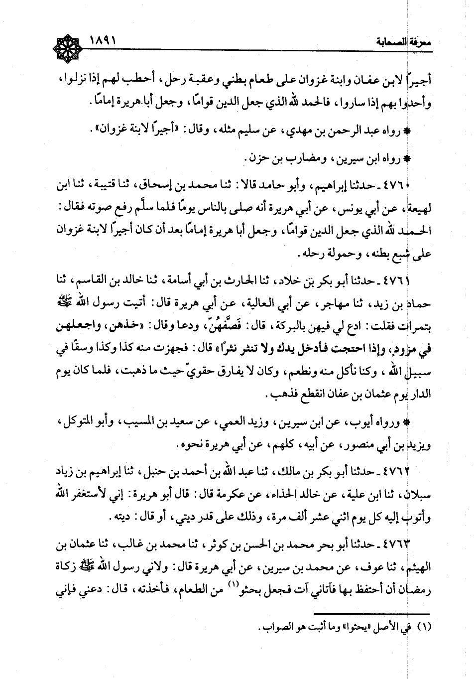 ٤٧٦٠ - حَدَّثَنَا إِبْرَاهِيمُ، وَأَبُو حَامِدٍ قَالَا: ثنا مُحَمَّدُ بْنُ إِسْحَاقَ، ثنا قُتَيْبَةُ، ثنا ابْنُ لَهِيعَةَ، عَنِ أَبِي يُونُسَ، عَنْ أَبِي هُرَيْرَةَ، أَنَّهُ صَلَّى بِالنَّاسِ يَوْمًا فَلَمَّا سَلَّمَ رَفَعَ صَوْتَهُ فَقَالَ: الْحَمْدُ لِلَّهِ الَّذِي جَعَلَ الدِّينَ قِوَامًا، وَجَعَلَ أَبَا هُرَيْرَةَ إِمَامًا بَعْدَ أَنْ كَانَ أَجِيرًا لِابْنَةِ غَزْوَانَ عَلَى شِبَعِ بَطْنِهِ، وَحَمَولَةِ رَحْلِهِ