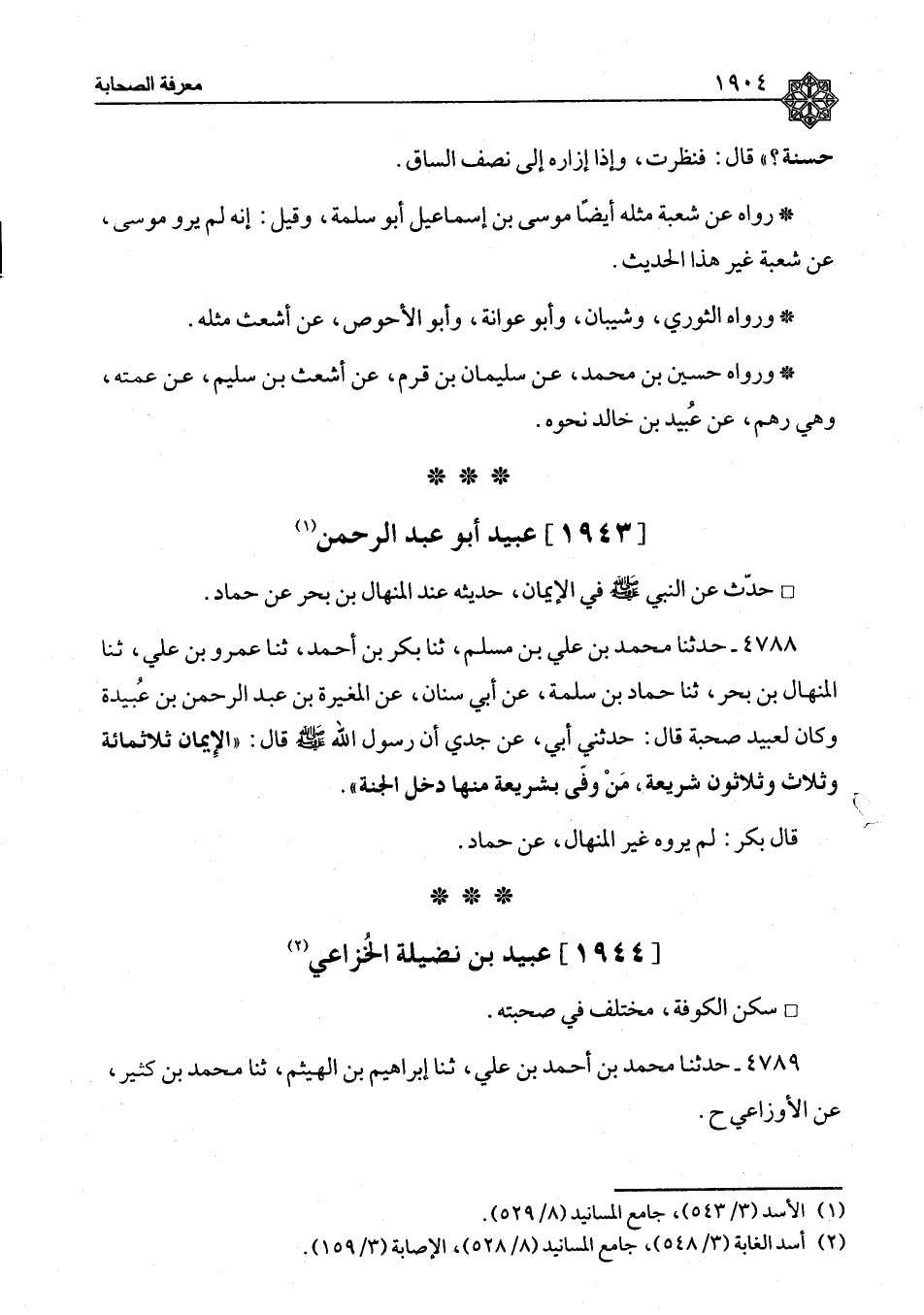 عُبَيْدُُ أَبُو عَبْدِ الرَّحْمَنِ حَدَّثَ عَنِ النَّبِيِّ صَلَّى اللَّهُ عَلَيْهِ وَسَلَّمَ فِي الْإِيمَانِ، حَدِيثُهُ عِنْدَ الْمِنْهَالِ بْنِ بَحْرٍ عَنْ حَمَّادٍ