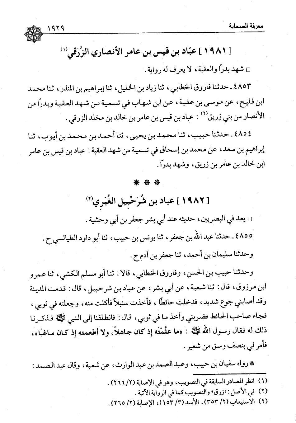 ٤٨٥٣ - حَدَّثَنَا فَارُوقٌ الْخَطَّابِيُّ، ثنا زِيَادُ بْنُ الْخَلِيلِ، ثنا إِبْرَاهِيمُ بْنُ الْمُنْذِرِ، ثنا مُحَمَّدُ بْنُ فُلَيْحٍ، عَنْ مُوسَى بْنِ عُقْبَةَ، عَنِ ابْنِ شِهَابٍ " فِي تَسْمِيَةِ مَنْ شَهِدَ الْعَقَبَةَ وَبَدْرًا مِنَ الْأَنْصَارِ، مِنْ بَنِي زُرَيْقٍ: عَبَّادُ بْنُ قَيْسِ بْنِ عَامِرِ بْنِ خَالِدِ بْنِ مَخْلَدٍ الزُّرَقِيُّ "