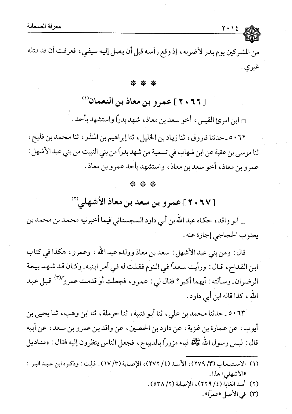 ٥٠٦٢ - حَدَّثَنَا فَارُوقٌ، ثنا زِيَادُ بْنُ الْخَلِيلِ، ثنا إِبْرَاهِيمُ بْنُ الْمُنْذِرِ، ثنا مُحَمَّدُ بْنُ فُلَيْحٍ، ثنا مُوسَى بْنُ عُقْبَةَ، عَنِ ابْنِ شِهَابٍ، «فِي تَسْمِيَةِ مَنْ شَهِدَ بَدْرًا مِنْ بَنِي النَّبِيتِ مِنْ بَنِي عَبْدِ الْأَشْهَلِ، عَمْرُو بْنُ مُعَاذٍ أَخُو سَعْدِ بْنِ مُعَاذٍ، وَاسْتُشْهِدَ بِأُحُدٍ عَمْرُو بْنُ مُعَاذٍ»