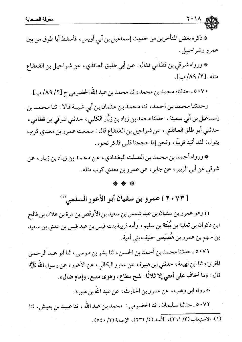 ٥٠٧٢ - حَدَّثَنَاهُ سُلَيْمَانُ، ثنا الْحَضْرَمِيُّ، ثنا أَبُو كُرَيْبٍ، ثنا مُحَمَّدُ بْنُ عَبَّادِ بْنِ أَبِي زَائِدَةَ، عَنْ عَمِّهِ يَحْيَى بْنِ زَكَرِيَّا، عَنْ إِسْمَاعِيلَ، عَنْ قَيْسٍ، سَمِعْتُ أَبَا الْأَعْوَرِ السُّلَمِيَّ، مِثْلَهُ