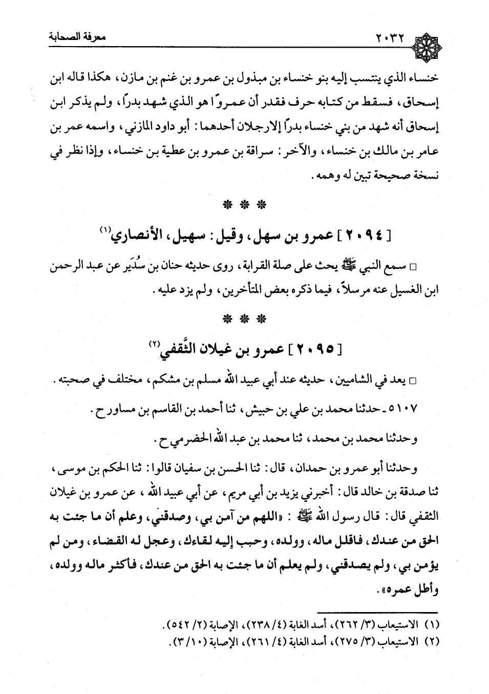 ٥١٠٨ ⦗٢٠٣٣⦘ حَدَّثَنَا مُحَمَّدُ بْنُ أَحْمَدَ بْنِ الْحَسَنِ، ثنا أَحْمَدُ بْنُ زَنْجُوَيْهِ، ح وَحَدَّثَنَا مُحَمَّدُ بْنُ أَحْمَدَ بْنِ حَمْدَانَ، ثنا الْحَسَنُ بْنُ سُفْيَانَ، قَالَا: ثنا هِشَامُ بْنُ عَمَّارٍ، ثنا صَدَقَةُ، يَعْنِي ابْنَ خَالِدٍ، ثنا يَزِيدُ بْنُ أَبِي مَرْيَمَ، عَنْ أَبِي عُبَيْدِ اللهِ مُسْلِمِ بْنِ مِشْكَمٍ، عَنْ عَمْرِو بْنِ غَيْلَانَ الثَّقَفِيِّ، عَنْ رَسُولِ اللهِ صَلَّى اللَّهُ عَلَيْهِ وَسَلَّمَ، مِثْلَهُ. وَرَوَاهُ مُعَلَّى بْنُ مَنْصُورٍ، عَنْ صَدَقَةَ مِثْلَهُ