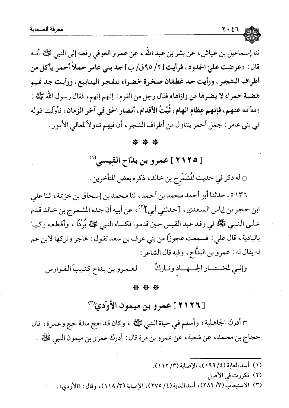 عَمْرُو بْنُ مَيْمُونٍ الْأَوْدِيُّ أَدْرَكَ الْجَاهِلِيَّةَ، وَأَسْلَمَ فِي حَيَاةِ النَّبِيِّ صَلَّى اللَّهُ عَلَيْهِ وَسَلَّمَ، وَكَانَ قَدْ حَجَّ مِائَةَ حَجٍّ وَعُمْرَةٍ، قَالَ حَجَّاجُ بْنُ مُحَمَّدٍ، عَنْ شُعْبَةَ، عَنْ عَمْرِو بْنِ مُرَّةَ، قَالَ: أَدْرَكَ عَمْرُو بْنُ مَيْمُونٍ النَّبِيَّ صَلَّى اللَّهُ عَلَيْهِ وَسَلَّمَ