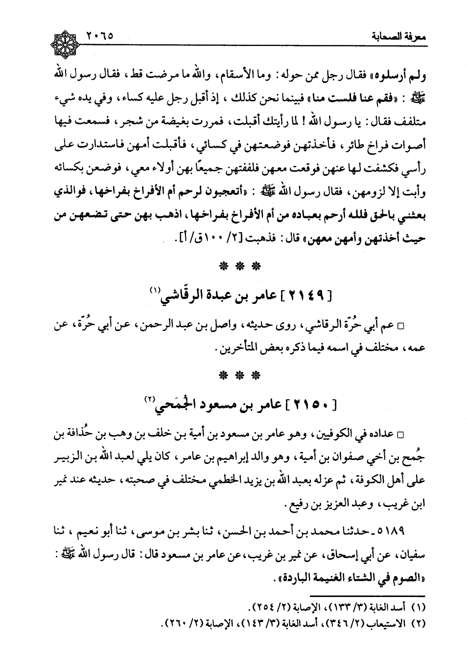 عَامِرُ بْنُ عَبْدَةَ الرَّقَاشِيُّ عَمُّ أَبِي حُرَّةَ الرَّقَاشِيِّ، رَوَى حَدِيثَهُ وَاصِلُ بْنُ عَبْدِ الرَّحْمَنِ، عَنْ أَبِي حُرَّةَ، عَنْ عَمِّهِ، مُخْتَلَفٌ فِي اسْمِهِ، فِيمَا ذَكَرَهُ بَعْضُ الْمُتَأَخِّرِينَ
