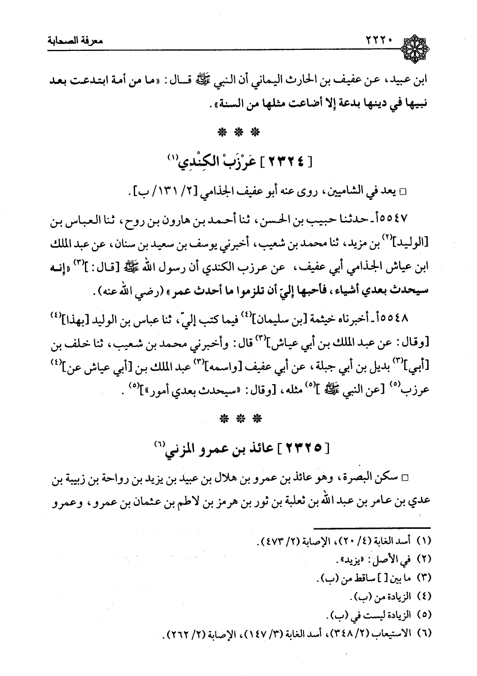 ٥٥٤٨ - أَخْبَرَنَاهُ خَيْثَمَةُ بْنُ سُلَيْمَانَ، فِيمَا كَتَبَ إِلَيَّ، ثنا عَبَّاسُ بْنُ الْوَلِيدِ، بِهَذَا، وَقَالَ: عَنْ عَبْدِ الْمَلِكِ بْنِ أَبِي عَيَّاشٍ، قَالَ: وَأَخْبَرَنِي مُحَمَّدُ بْنُ شُعَيْبٍ، ثنا خَلَفُ بْنُ أَبِي بُدَيْلِ بْنِ أَبِي جَبَلَةَ، عَنْ أَبِي عَفِيفٍ وَاسْمُهُ عَبْدُ الْمَلِكِ بْنُ أَبِي عَيَّاشٍ، عَنْ عَرْزَبٍ، عَنِ النَّبِيِّ صَلَّى اللَّهُ عَلَيْهِ وَسَلَّمَ مِثْلَهُ، وَقَالَ: «سَيَحْدُثُ بَعْدِي أُمُورٌ»