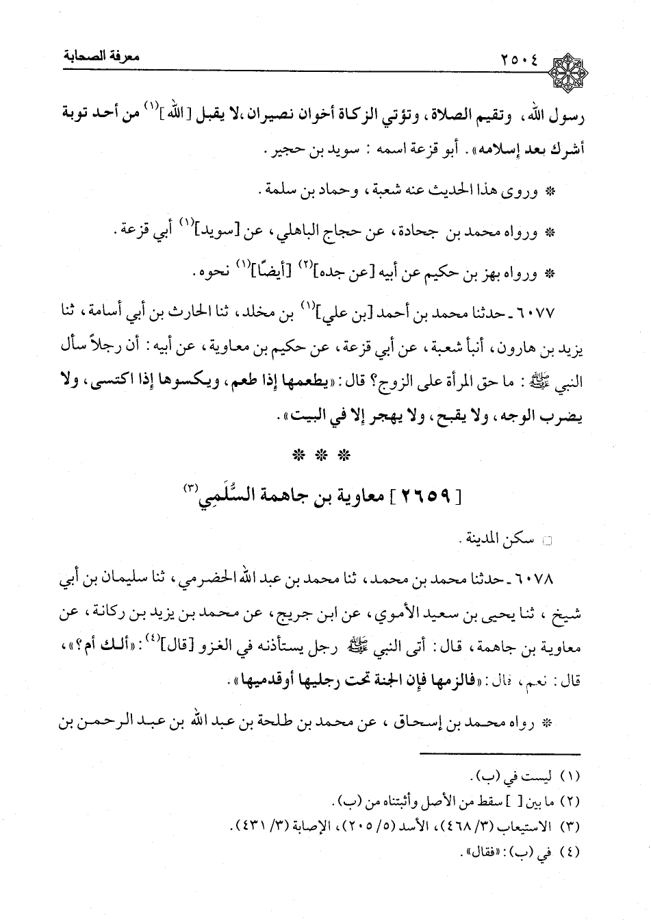 مُعَاوِيَةُ بْنُ جَاهِمَةَ السُّلَمِيُّ سَكَنَ الْمَدِينَةَ